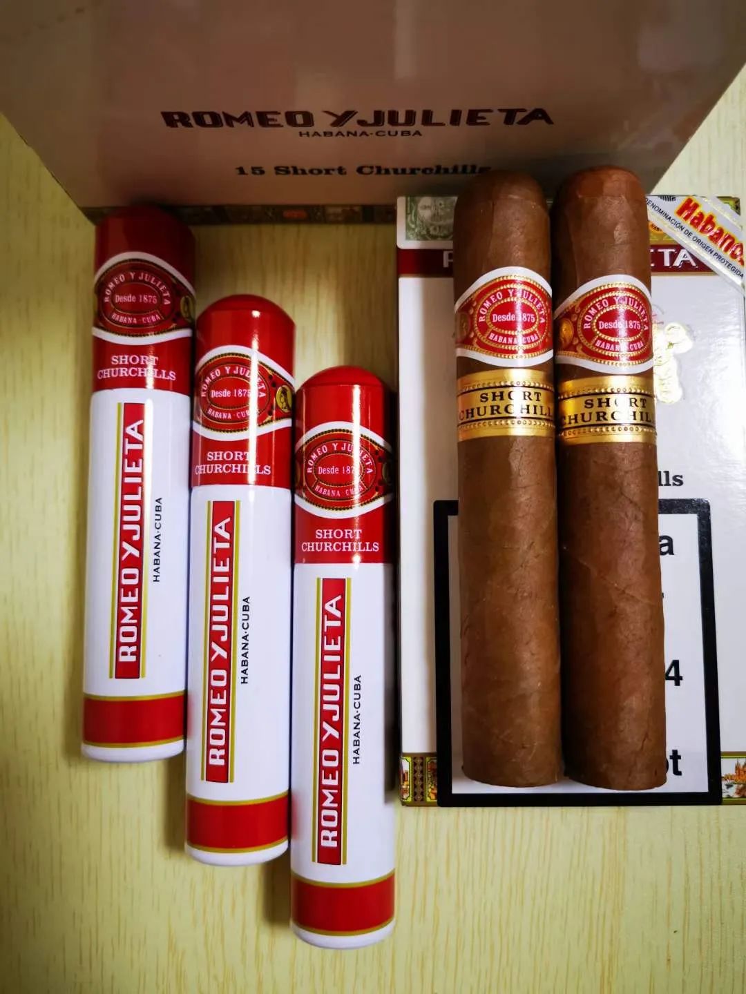 罗密欧 短丘 15支铝管 16年 Romeo y Julieta Short Churchills 尺寸: 长度124mm/环径50 品型: Robusto 口味:PCC店长评选2014亚洲最受欢迎10款年度雪茄No.10,众多资深茄客评价非常好、性价很高的一款好茄!巧克力,甘草,奶香,花香,雪松木香,胡椒味,口感丰富美妙