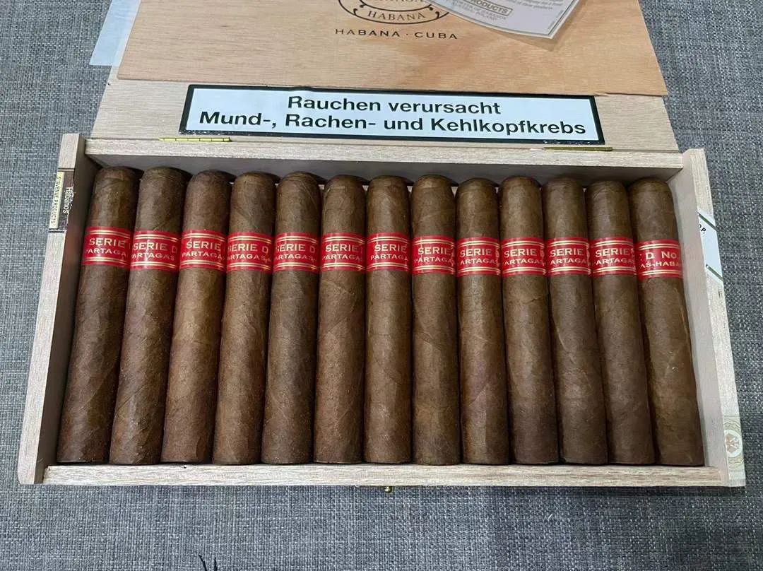 帕特加斯 D4 Partagas Serie D No.4 尺寸:124/50 品型:Robusto 规格:25支/木盒 描述:胡椒味,土味、木香味、可可味及焦糖味都会依次出现,尾端出现味觉上的升华。最高性价比罗伯图尺寸、有口皆碑、绝好的日常好茄!